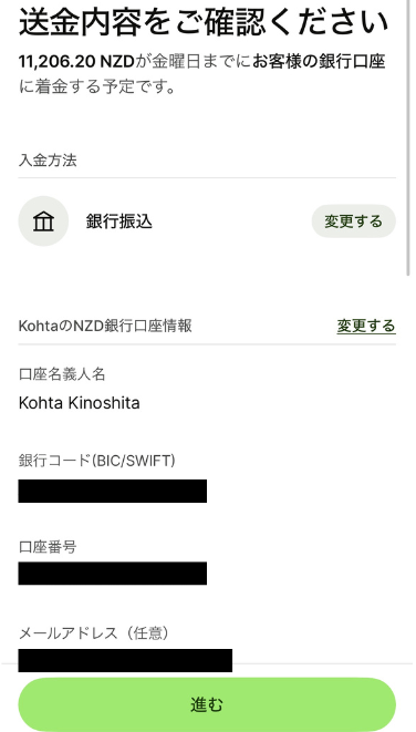 これは初めて送金を行う方にとって、非常に安心なポイントです。シンプルな画面で送金中の各ステップが見える化され、「今どこにあるのか」がすぐに分かるのが特徴です。