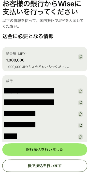 入金が確認されると、Wiseが受取人に送金を開始します。