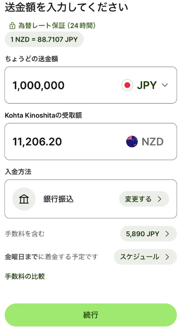 この段階で、他の海外送金サービスとの手数料の比較ができます。